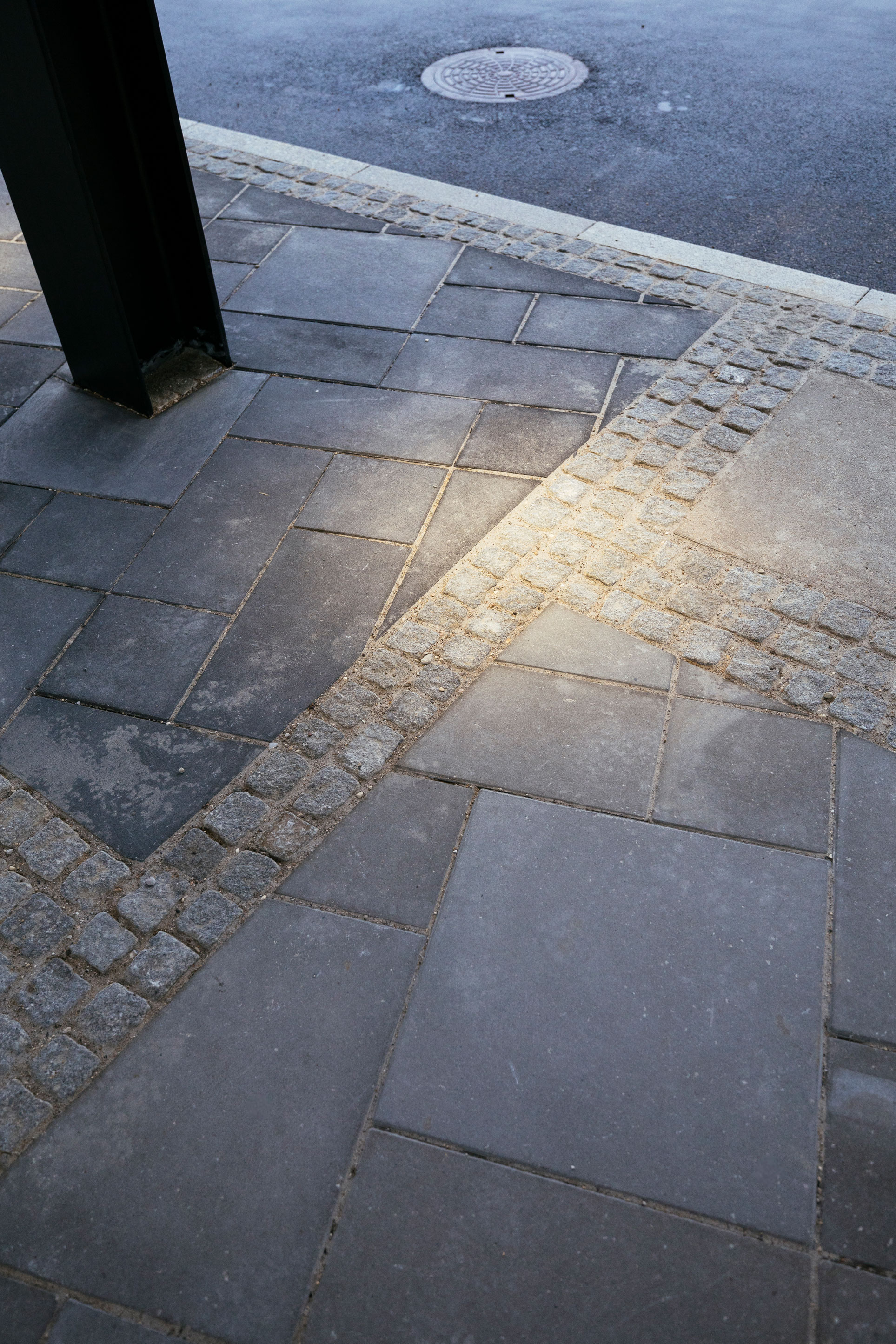 Arbejdet er udført for CG Jensen. Vi har sat granitkantsten i busbåsene og rundt om terminal i 45 grader samt lagt 60x30, 30x30 og 60x60 i hele terminalen deraf er hele flisebelægningen indrammet i bort af 2 rækker chaussésten. Derudover er der lagt 1 km fortov med nordiske og grå chaussésten på Carsten Nieburh's Gade.