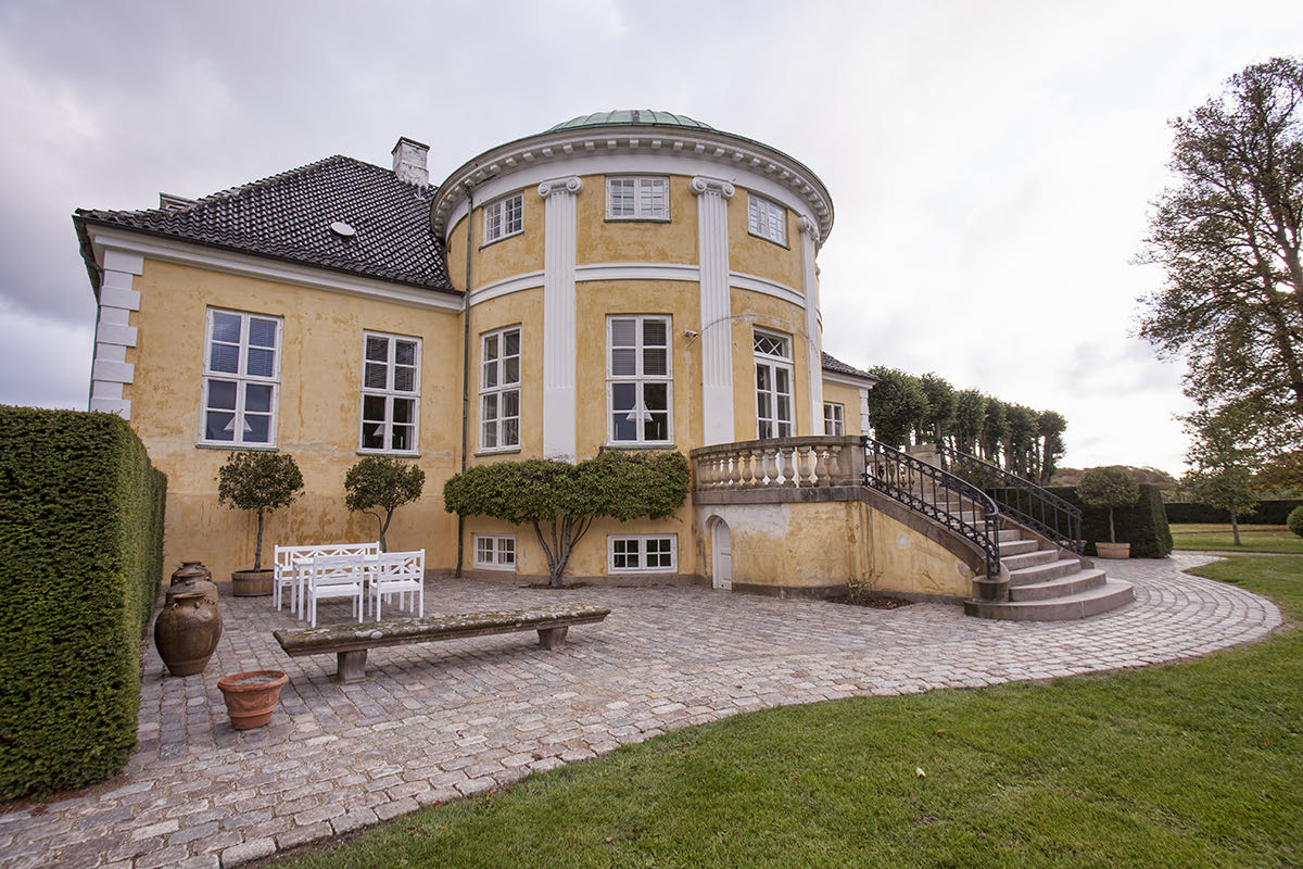 Projektet er udført i gl. slidte brosten NL'ere sat i grus. Til en start skulle stykkerne til højre og venstre for trappen blot omsættes pga tidens tand, men undervejs i projektet valgte Frydenlund Slot, at omsætte stien foran trappen, så området fremstår som nyanlagt.