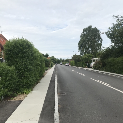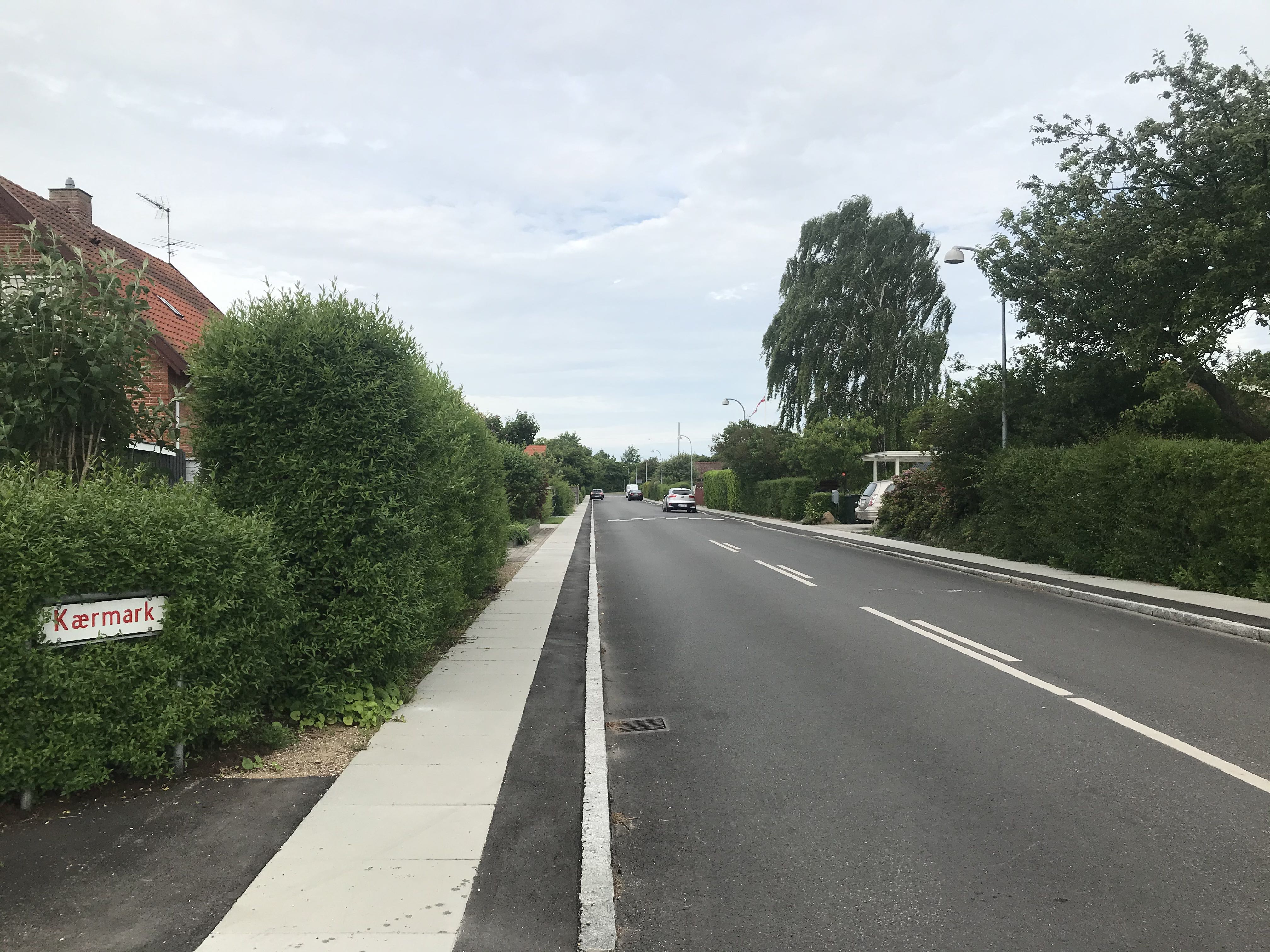 Arbejdet er udført for Hvidovre Kommune - Fortovsrenovering Kærmark og Aktæons Allé. Vi har gravet de gamle kantsten og det gamle fortov op, og sat helt nye kantsten samt lagt nye fortovsfliser 80x62,5x7cm, ved indkørsler/overkørsler er der lagt 82x62,5x10cm og sat chaussésten i forkant. Der er lagt en enkelt række fliser og herefter lagt asfalt ud til kantsten. Vi slutter af med kantfyldning ude på vejen, op mod kantstenen.