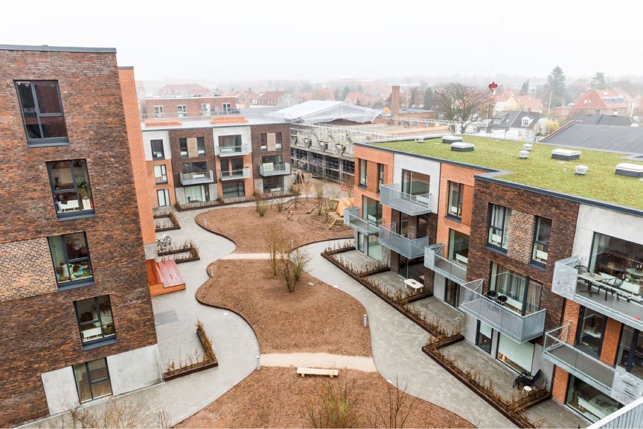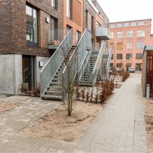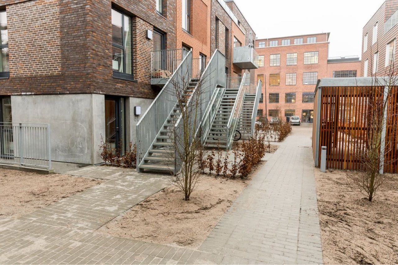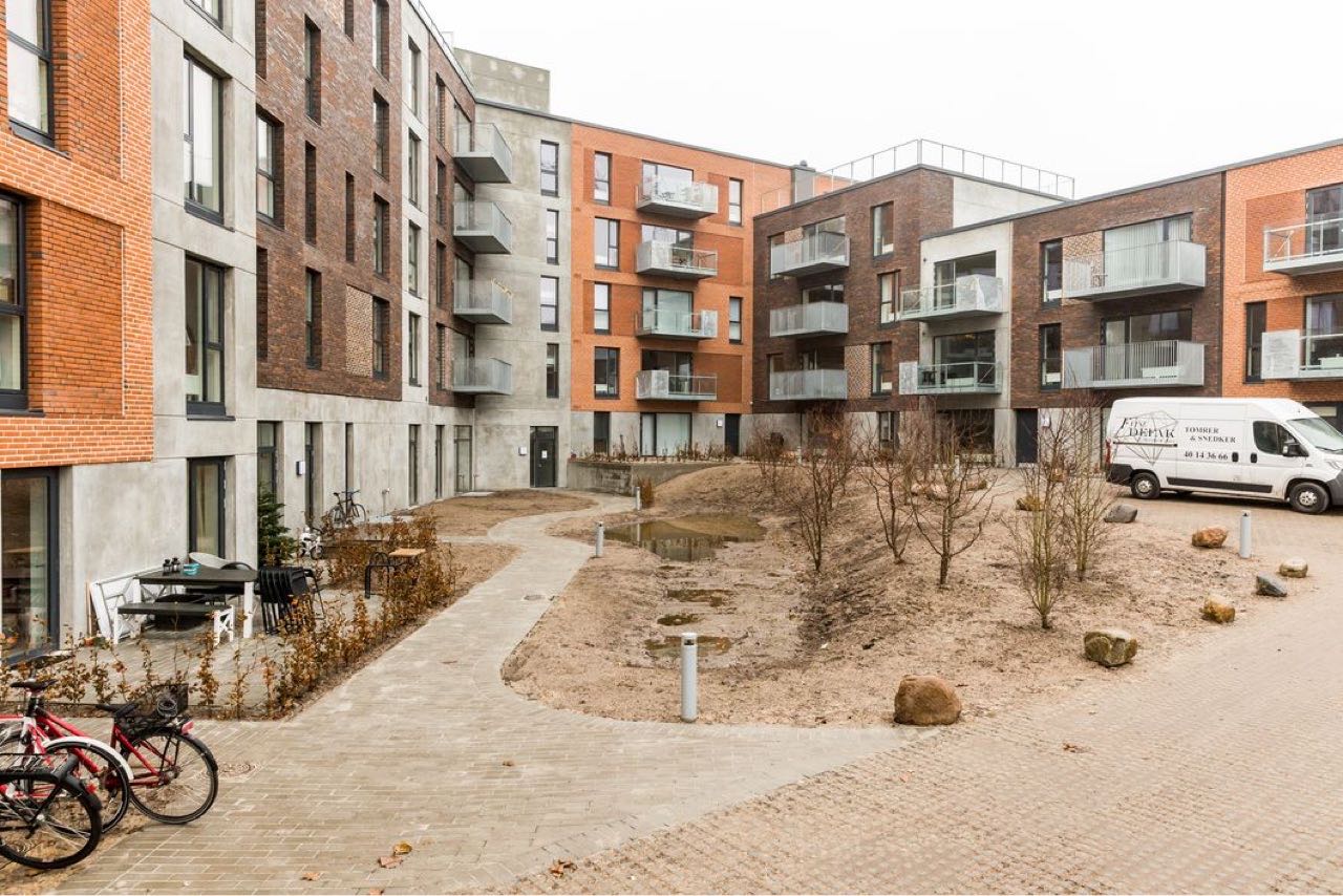Der er lavet større støttemure i Danblokke pga niveauforskelle.