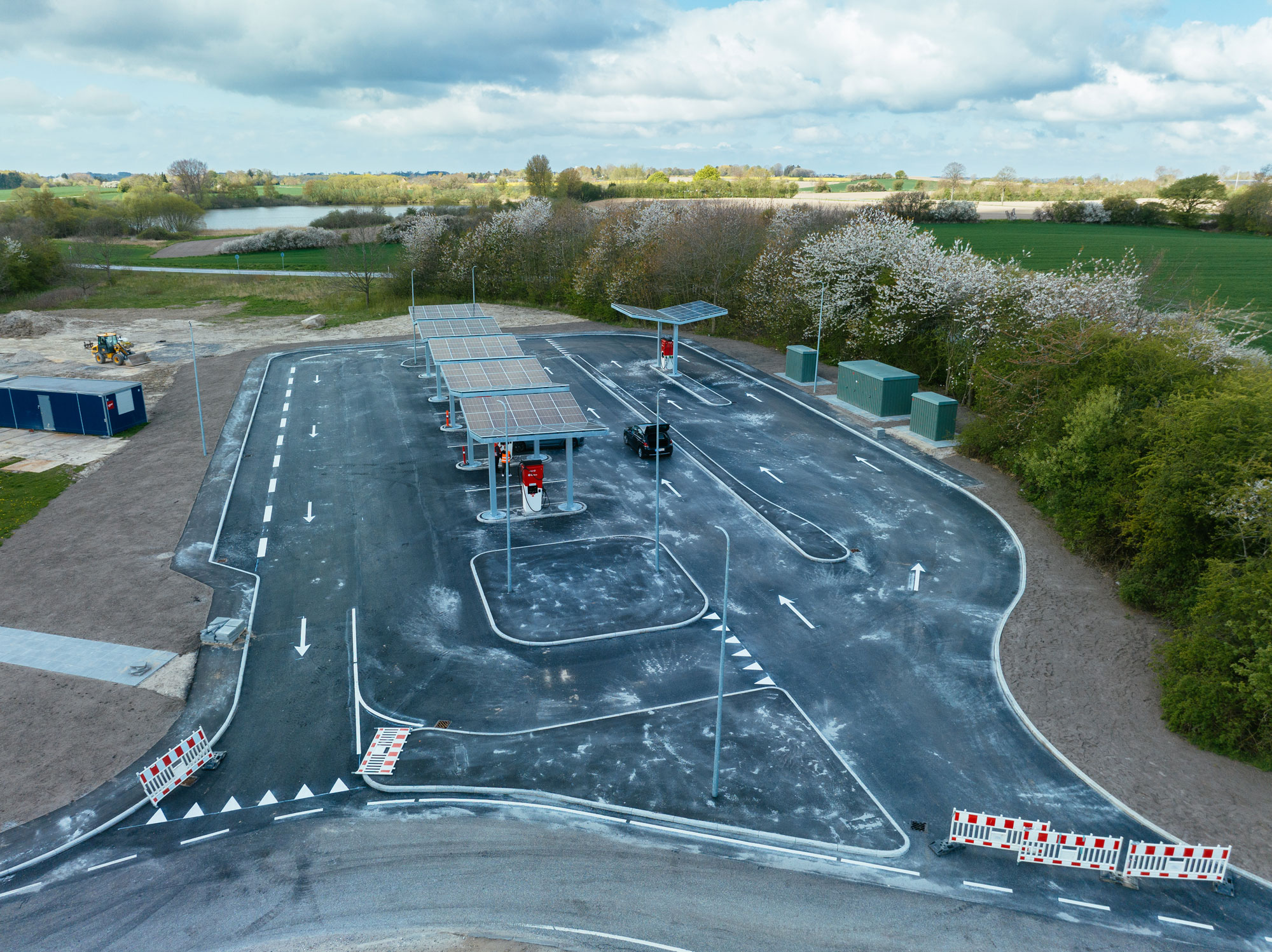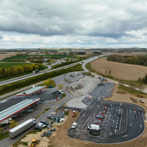 Arbejdet udføres for Vejdirektoratet. Der etableres nye ladestandere og rastepladserne udvides både på Øst Og Vest.