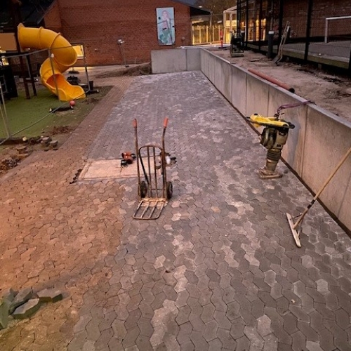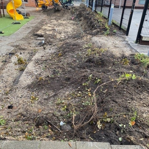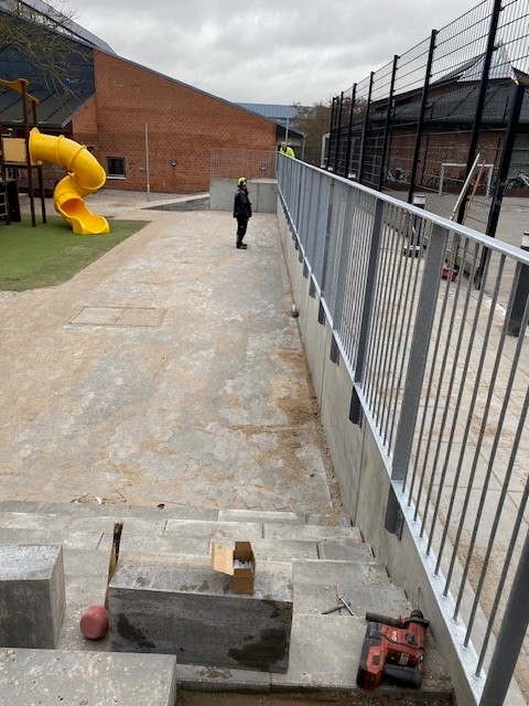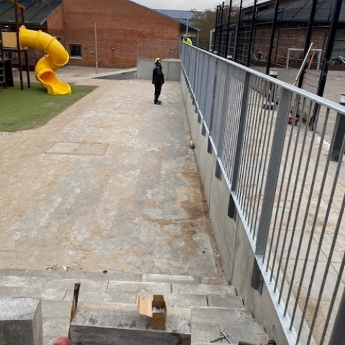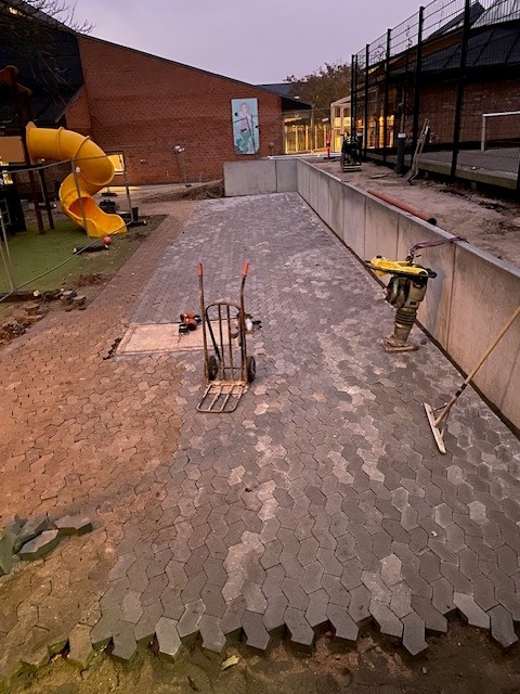 Arbejdet er udført for Hørsholm Kommune. Vi har renoveret legepladsarealet på Usserød skole. Projektet omfattede fjernelse af det gamle faldunderlag, omlægning af skolegården samt opførelse af nye vægge. Derudover har vi monteret et nyt hegn.