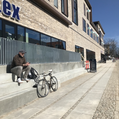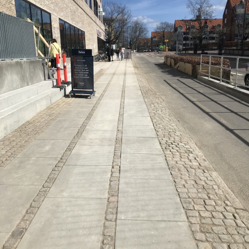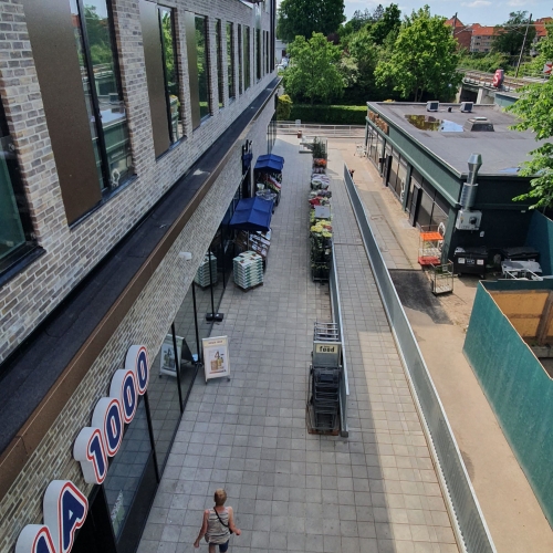 I hele parkeringshuset er der lagt 9 cm Coloc sten, og langs butiksfacaderne er der lagt 30x30 fliser.