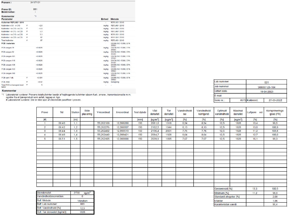 Ude på arbejdsstederne får vi taget proctor prøver, der viser komprimeringsgraden, her ligger vi på et gennemsnit på 100,5% i den seneste måling.