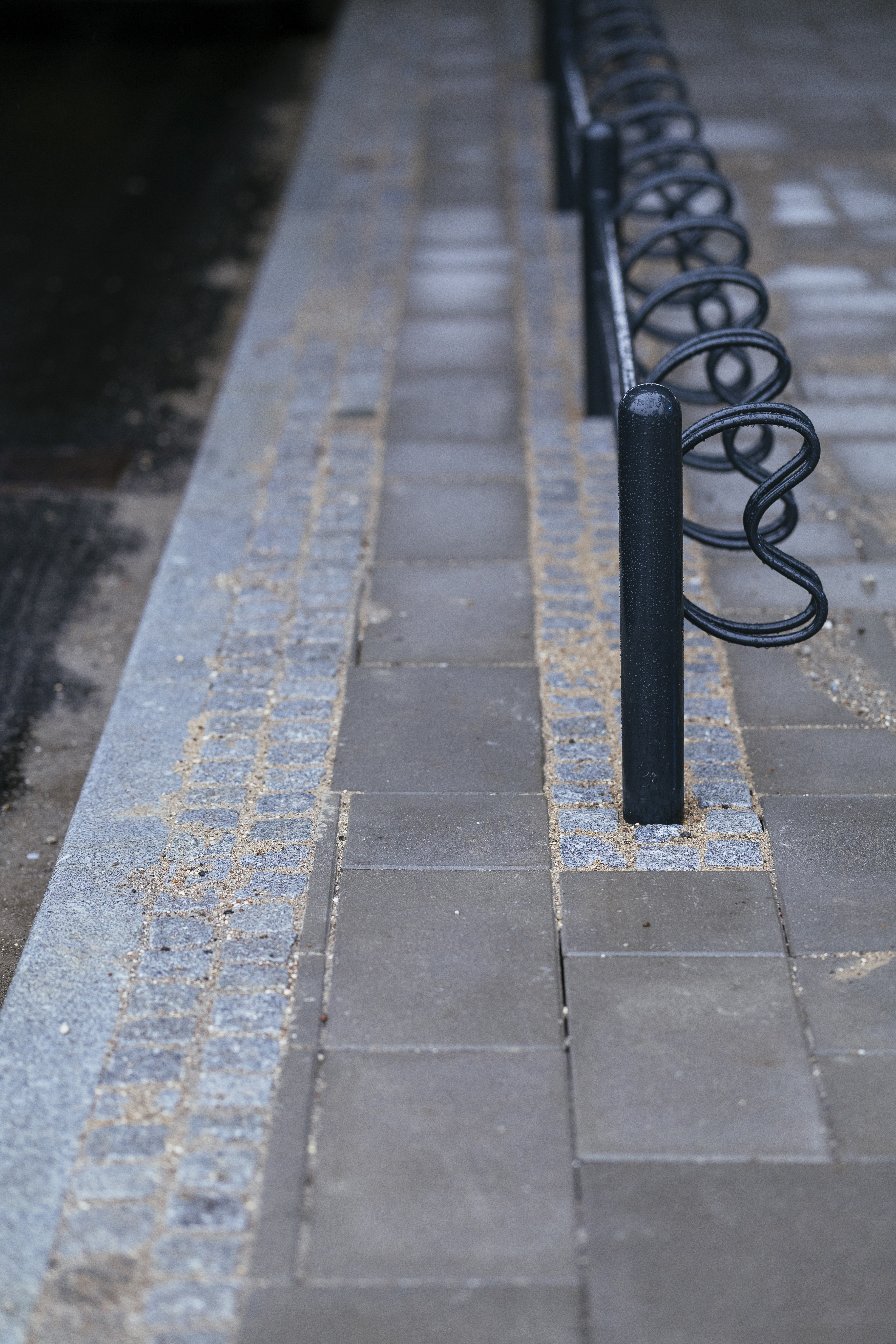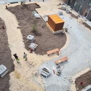 Der er opsat specielle cykel stativer, powder coated til at passe naturligt ind i området, med deres brune farve. Området som er beplantet med de flotteste enggræsser og blomster, samt forskellige træer, der alle har måttet være på ”køl” så de kunne holde sig, inden tiden var til at sætte dem i jorden.