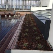 Arbejdet er udført for Sjælsø Gruppen. Vi har lagt betonfliser på justerbare flisefødder. Fliserne er kombineret med gitterriste for at få en optimal dræning. Tagterrassen er inddelt i to typer taghaver. Ekstensiv- og intensiv beplantning. Den ekstensive beplantning består af et let sedumtag med sedummåtter og vildengsfrø. Disse områder er omgrænset med kantafgrænsninger i sort stål. Den intensive beplantning består af tilplantede plantekasser.