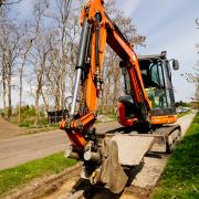 Vi graver små 4 km grøfte trug, som skal kunne håndtere de store regnvandsmængder, samtidig sætter vi Ø1250 betonbrønde ned og laver nye kloakledninger på udvalgte strækninger i Ø315 plast. På modsatte side af den dobbeltrettede cykelsti, graver vi et nyt regnvandsbassin, som forsinker regnvandet inden det bliver udledt i kloaknettet.