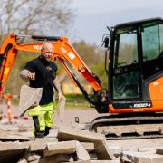 Vi indbygger ca. 10.000 tons indbygnings jord og derefter ca. 20.000 tons nye bund materialer.