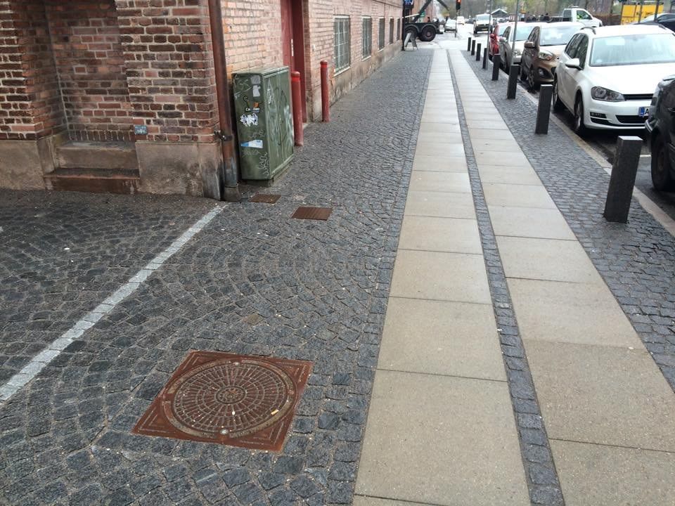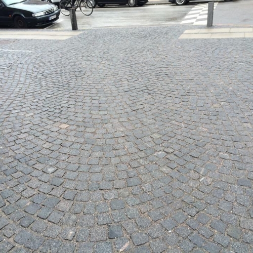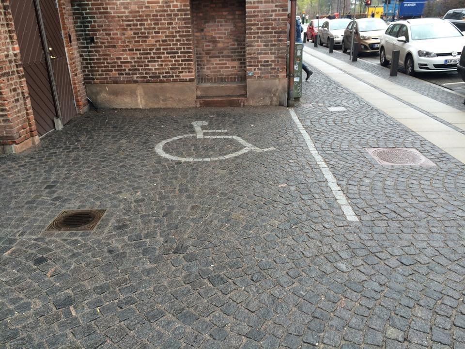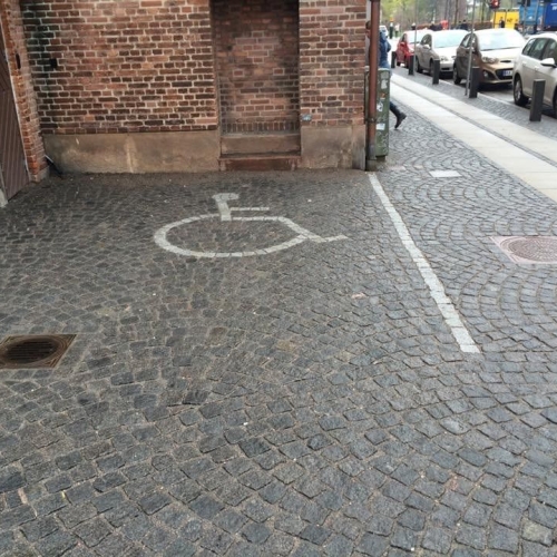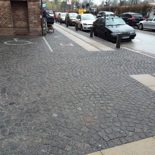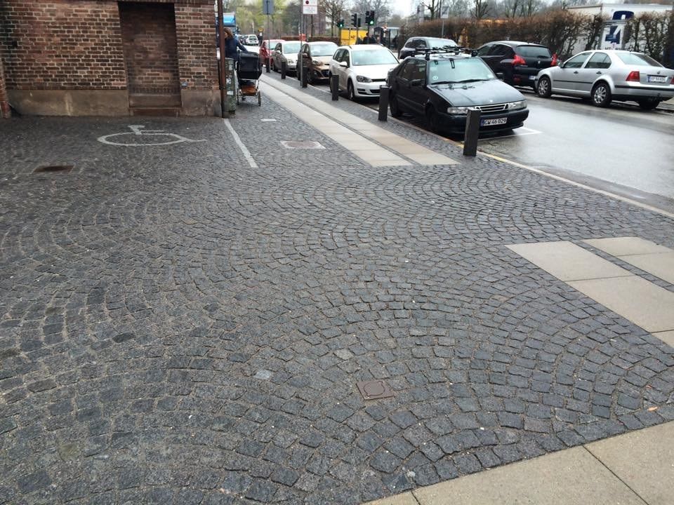 Arbejdet består i sætning af chaussésten i buer på p-plads og stier, handicap skiltet i p-båse samt p-båse er også udført i chaussésten.