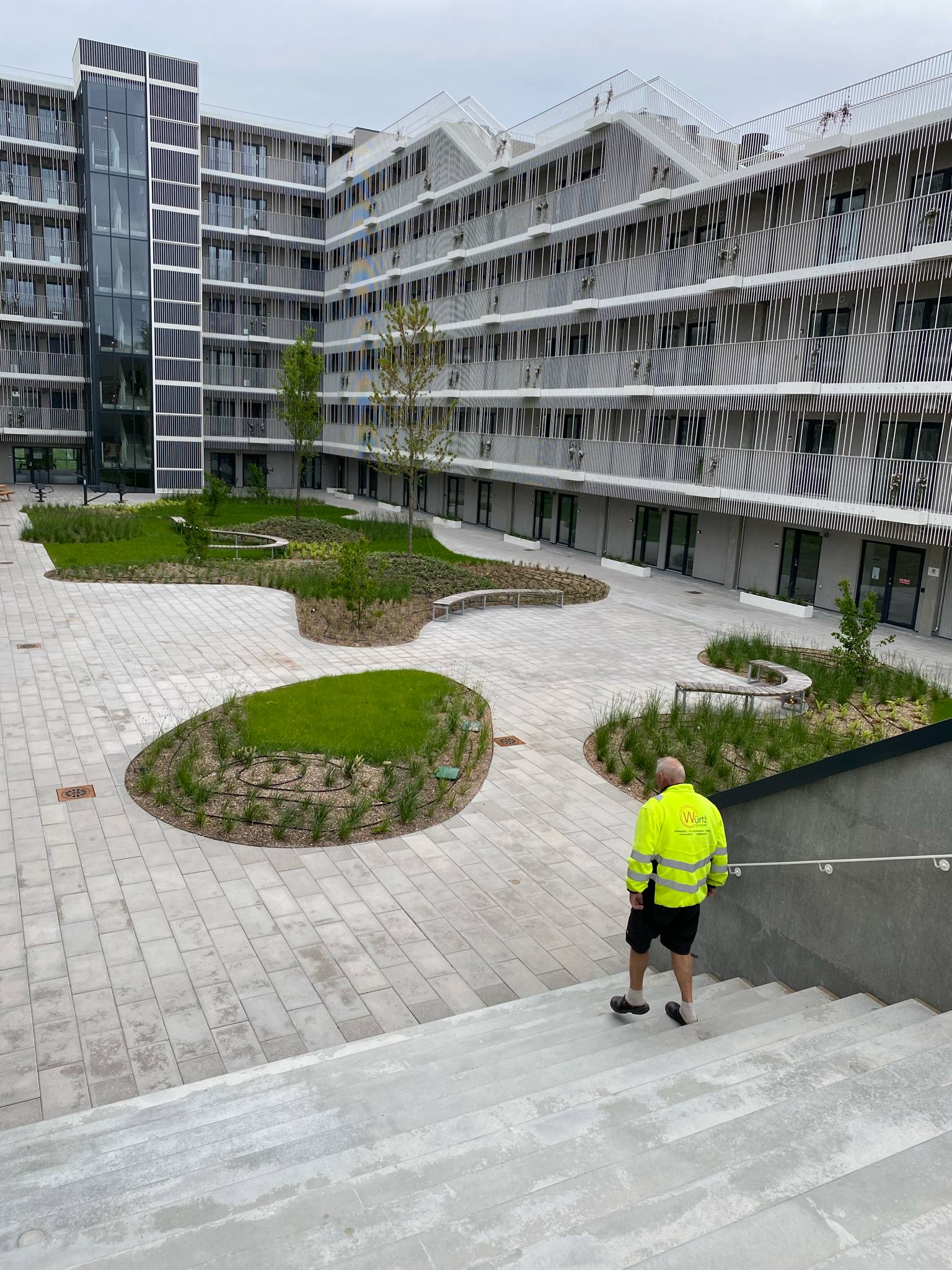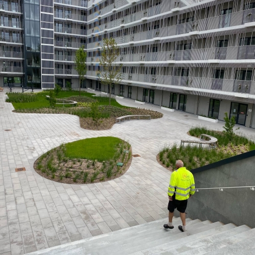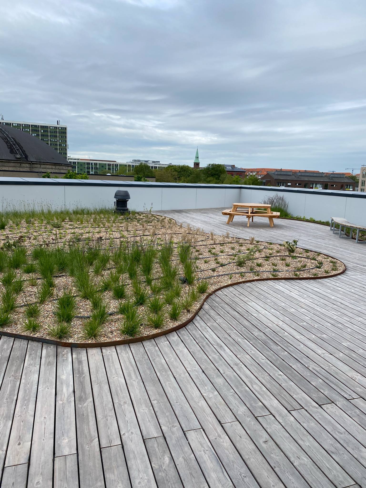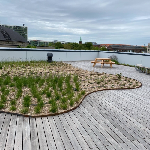 Ca. 2.500 m² taghave med belægning, jernkanter og beplantning – fra stueplan til 7. sal.