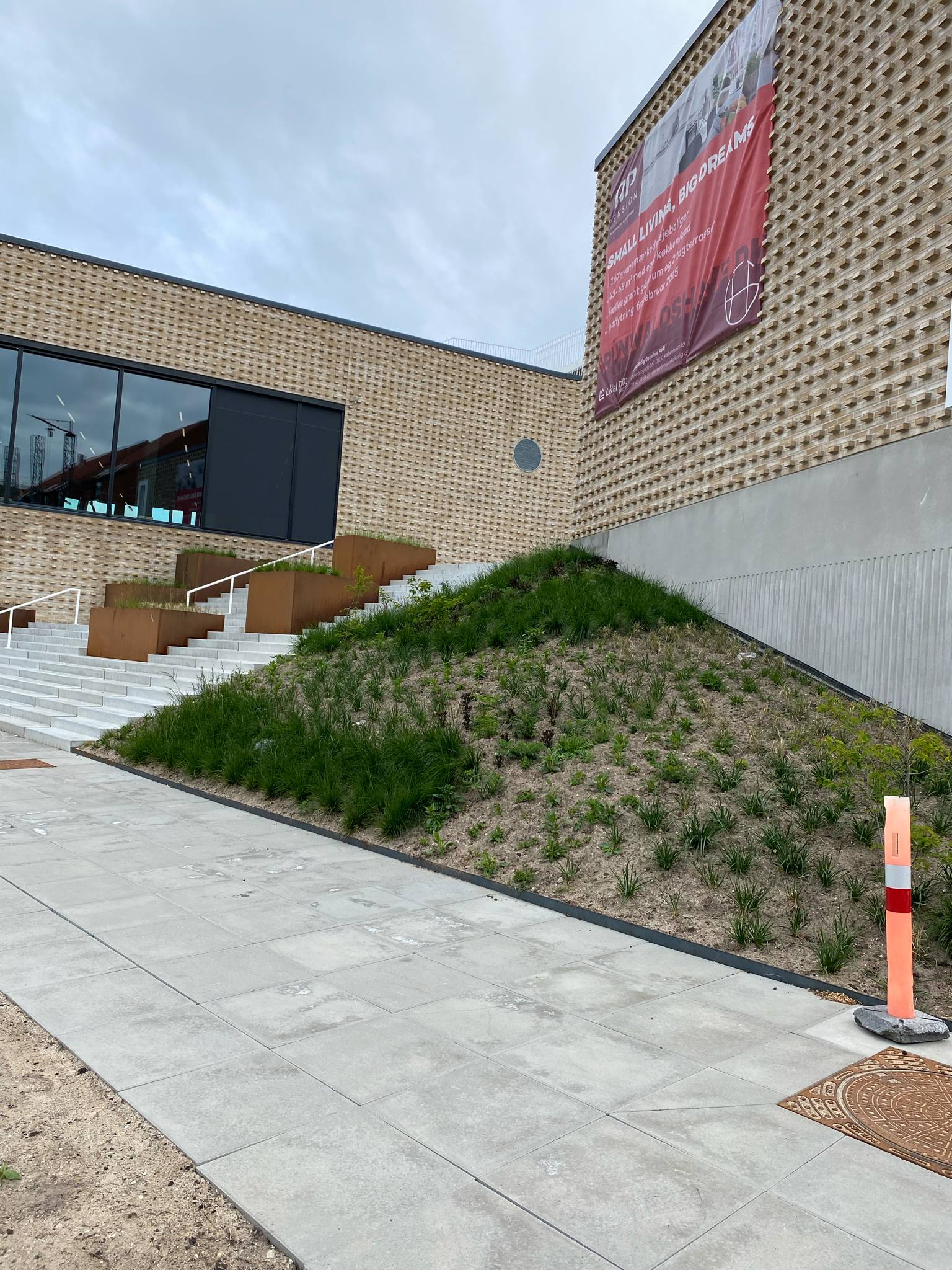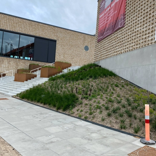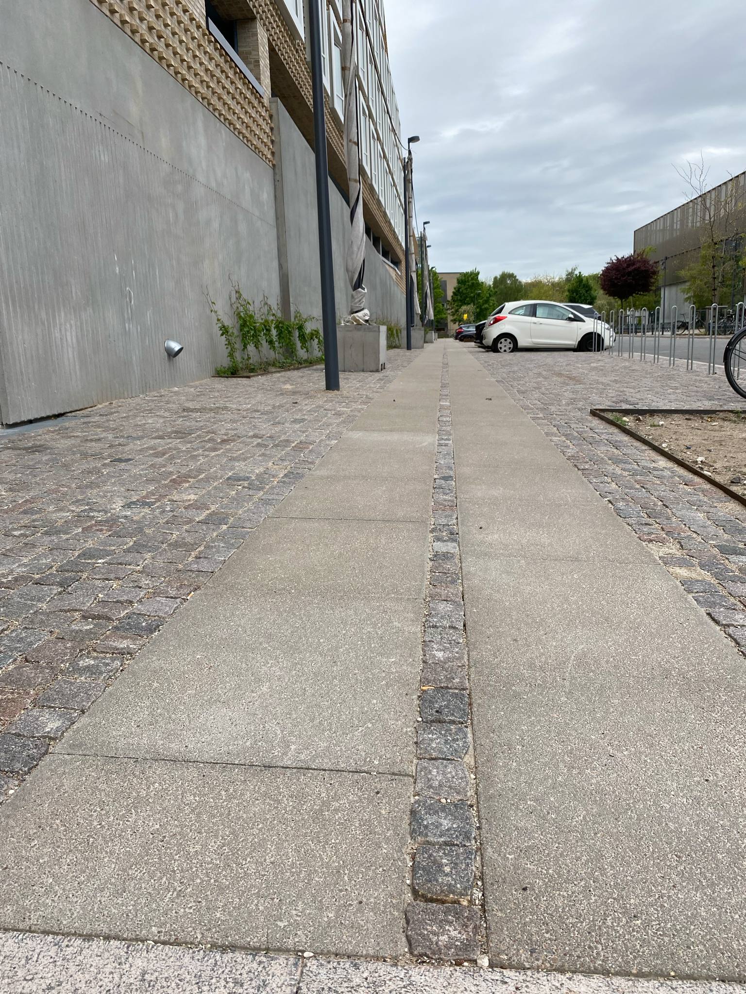 Slotsgrus langs sydsiden til cykelparkering.