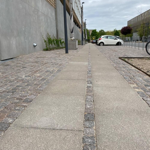 Nye kantsten, Københavnerfortove, chaussésten, flisebelægning, jernkanter og plantebede.
