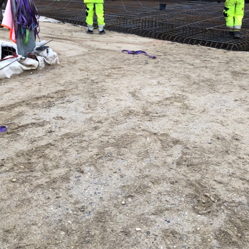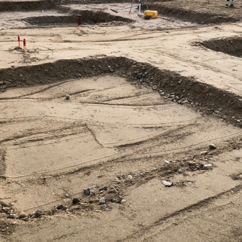 Udgravning til 60 nedsænkede p-pladser i kælderen, samt hele bundpladen.
