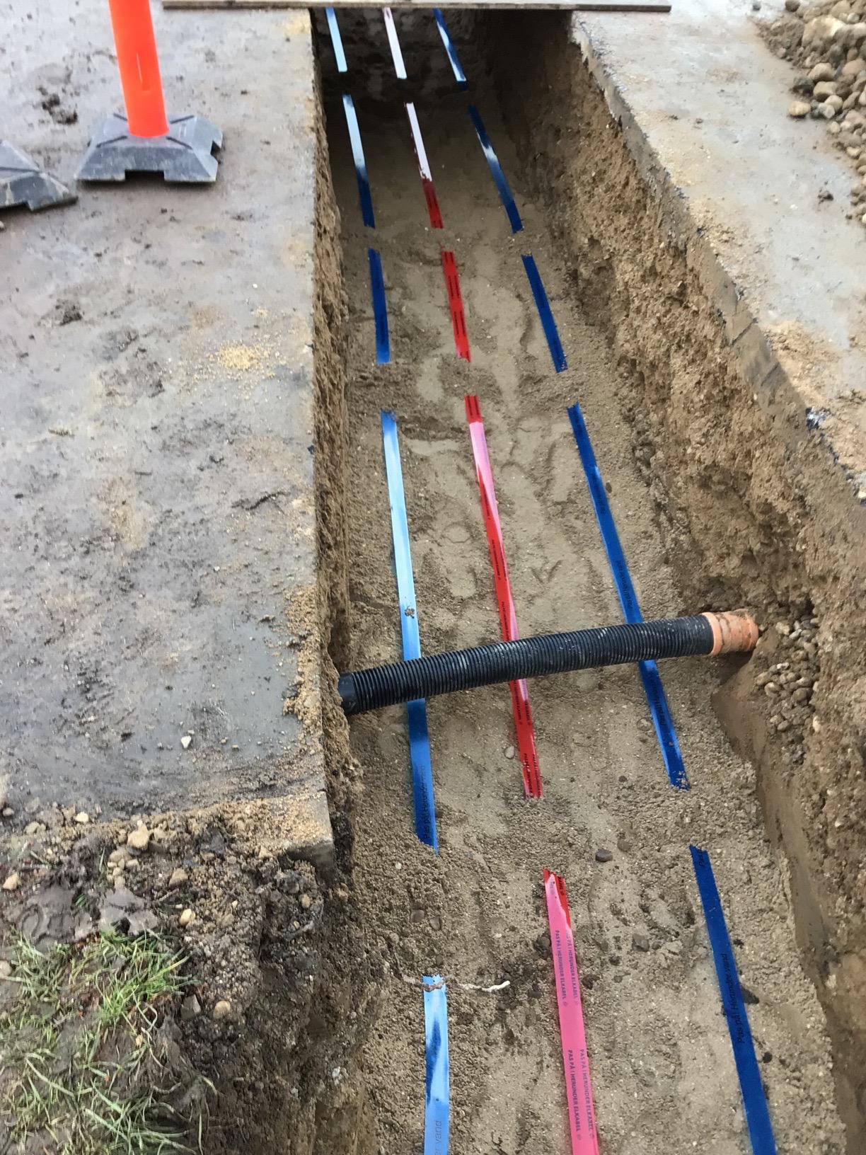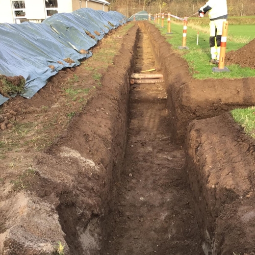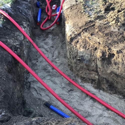 Arbejdet er udført for Ringsted Forsyning. Der er gravet varmevekselrør og elkabler ned. Vi har monteret kabelbrønde, til dem der der trukket føringsrør og lavet opføring til kabelbrøndene.