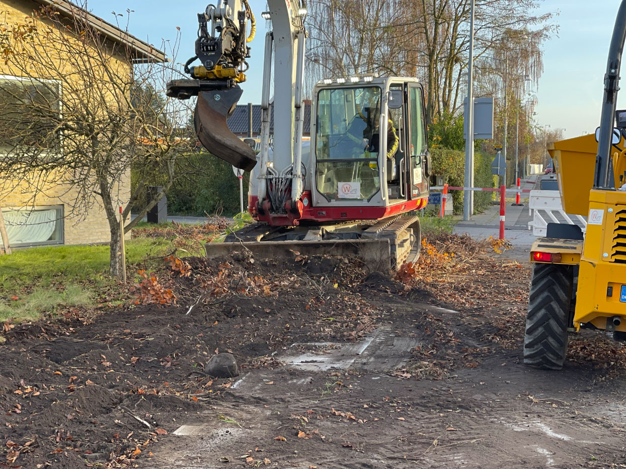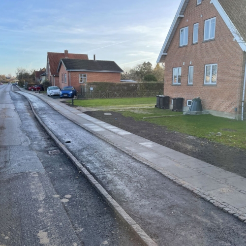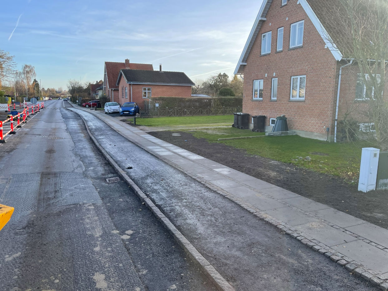 Projektet er udført for Faxe Kommune. Vi har gravet ud til nye cykelstier i begge sider. Der er bygget bund, sat kantsten og lagt asfalt på de nye cykelstier. Til sidst er der sat signalregulering op.