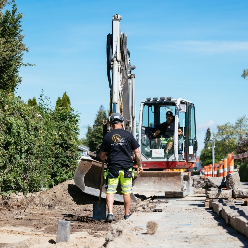 ”Vi kommer til at have folk i gang hver dag et eller andet sted i kommunen over de næste to år”, siger Rene Würtz. Würtz Gruppen står for kloakering og brolægning og har desuden det overordnede projektansvar og med koordinering af underleverandører til asfaltering, tv-inspektion, strømpeforring mm.